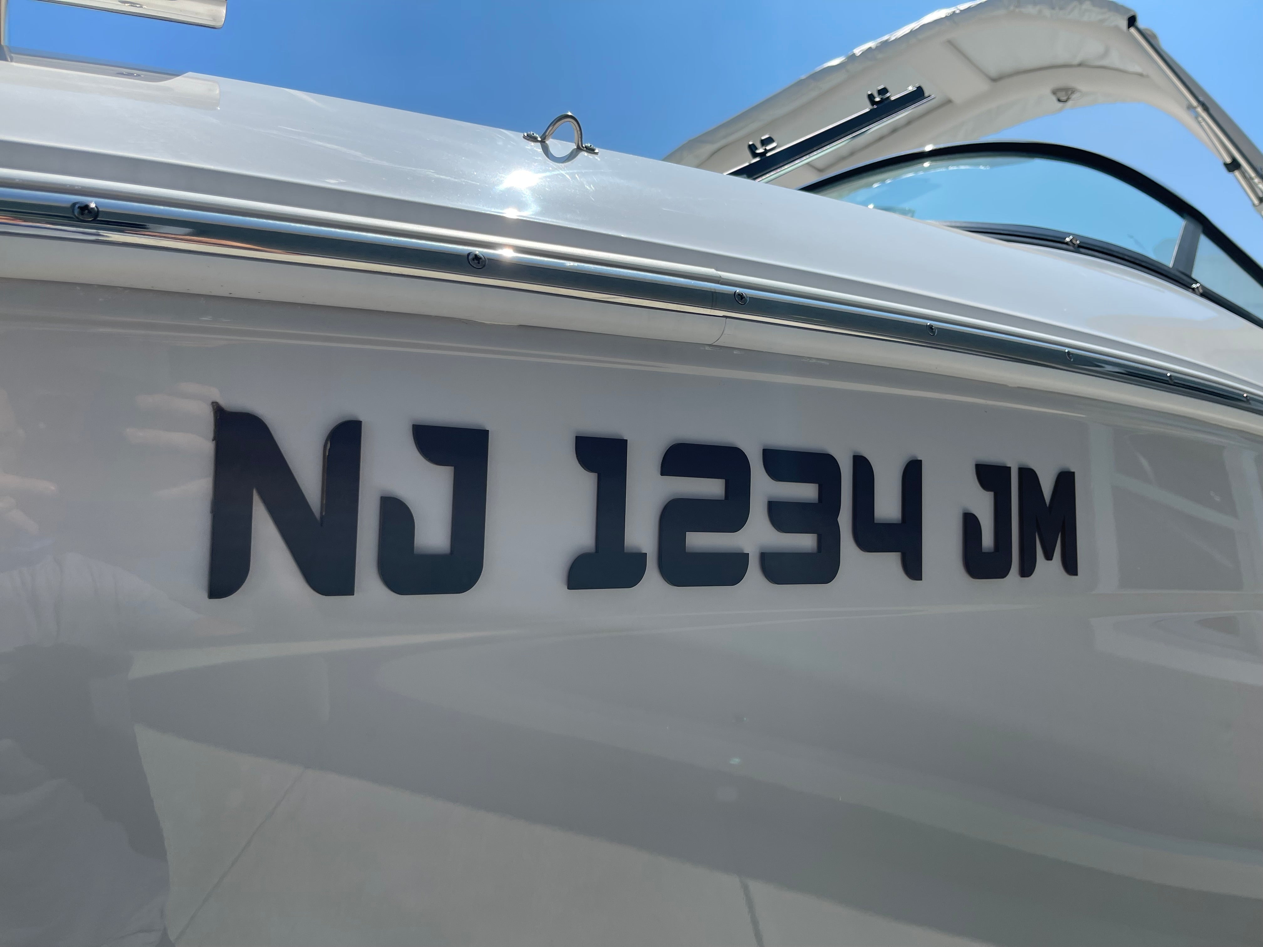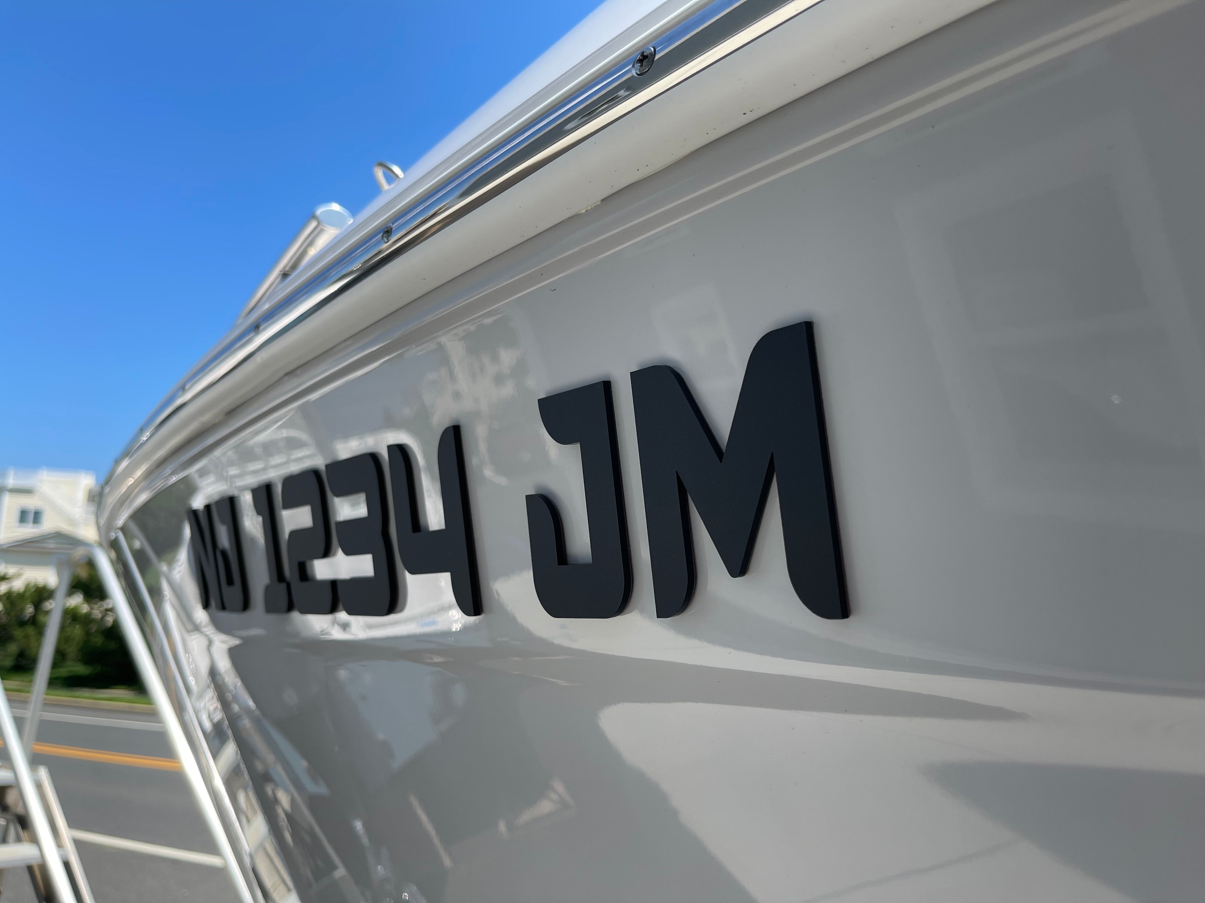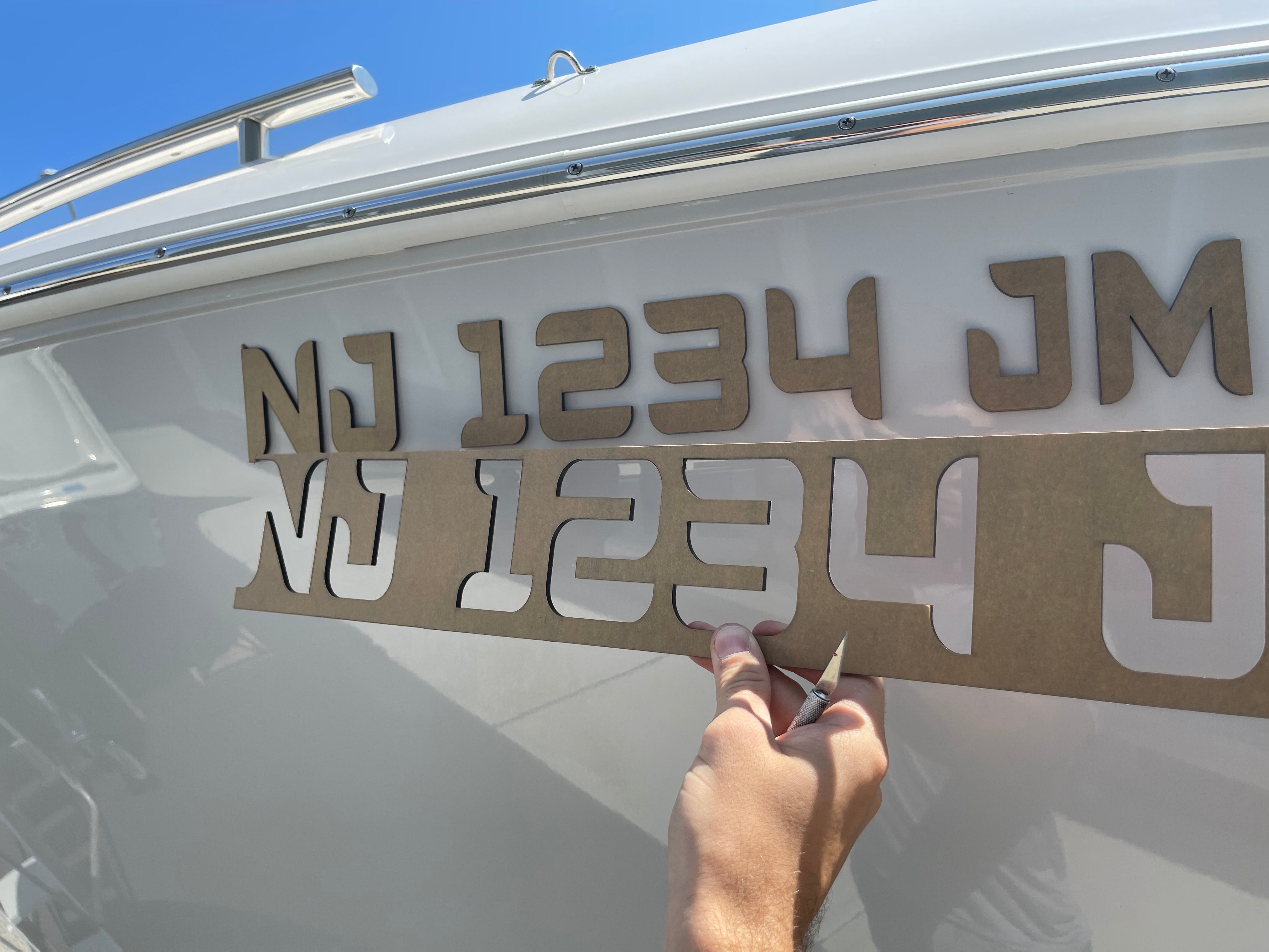 Custom Nautique registration numbers, 3D emblem style registration, boat registration decals, custom boat numbers, marine-grade registration decals, personalized boat graphics.